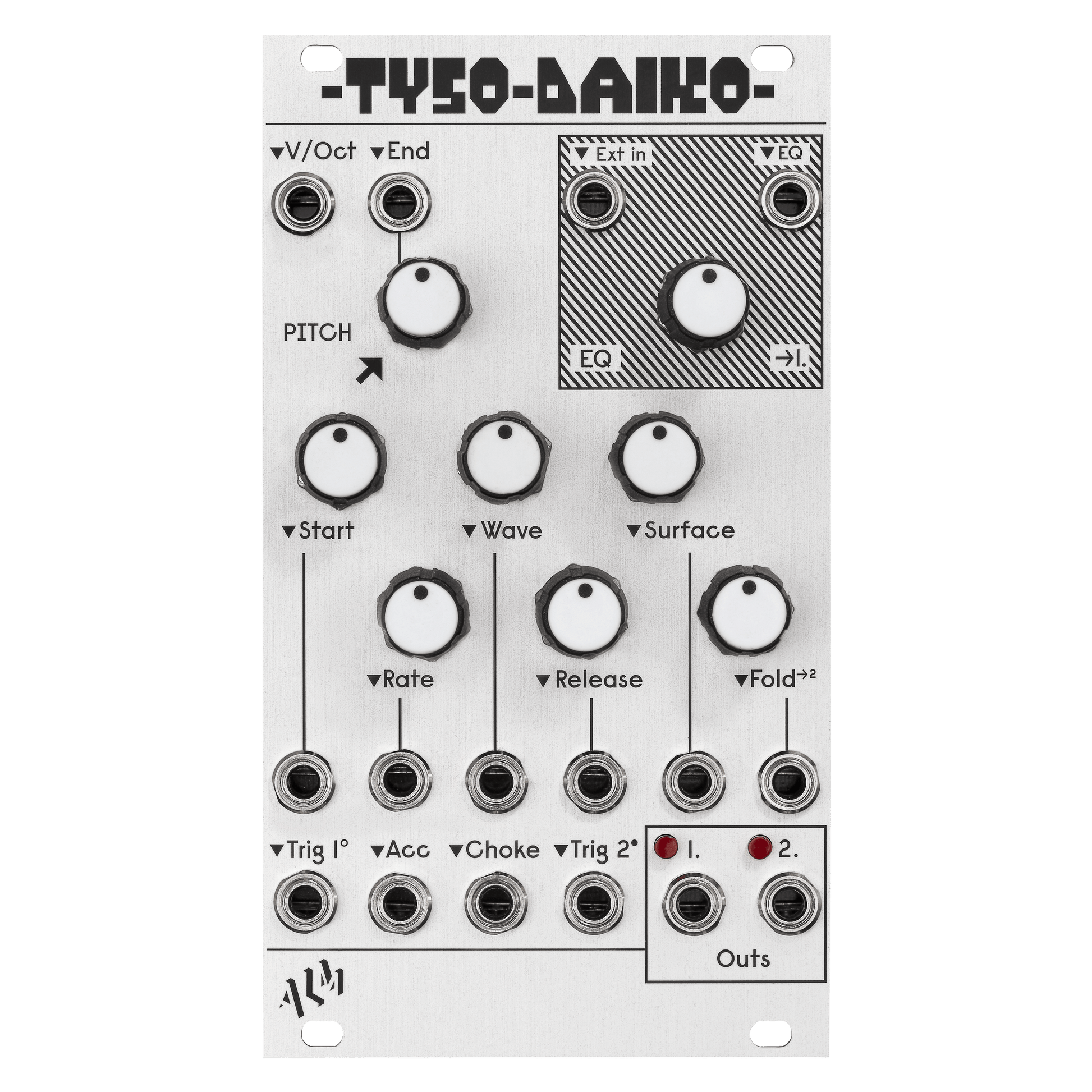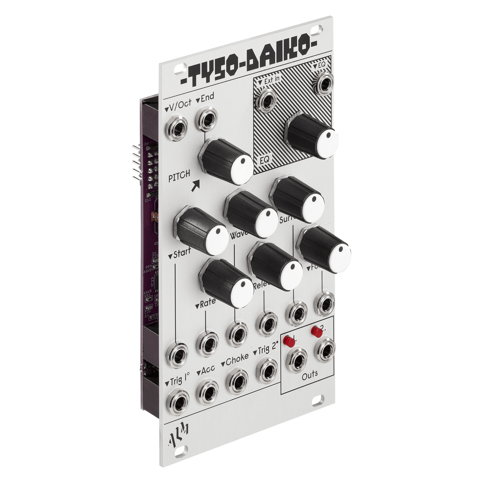 The ‘Tyso Daiko’ is a dual 12-bit digital wavetable drum voice with full voltage control and an analog EQ output path.